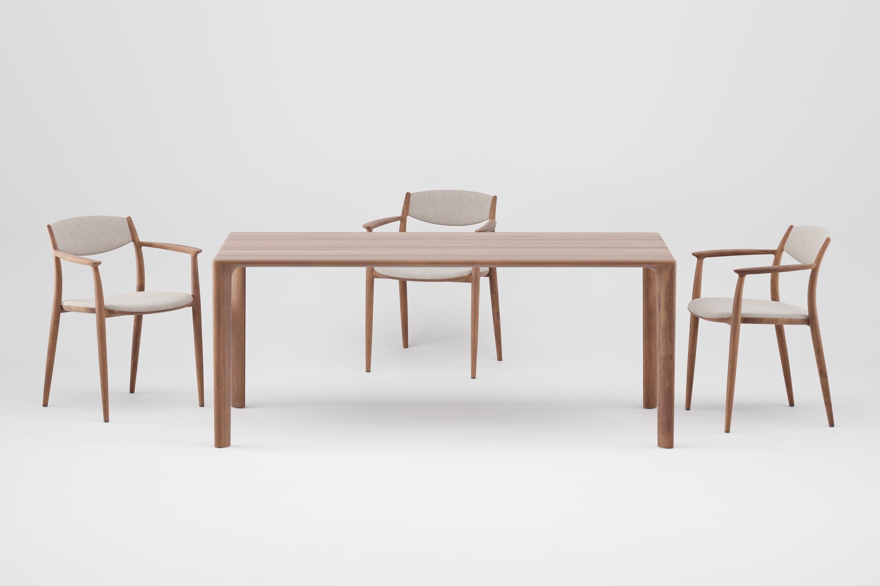 Raznolikost tapaciranog namještaja za sjedenje savršeno zakrivljenih linija pruža privlačnu udobnost i profinjenu estetiku. Poput udobne meke školjke, Mela obavija prostor opuštajućeg sjedenja, ergonomski prilagođen svrsi i potrebama korisnika, zahvaljujući proporcionalnim varijacijama visine i širine. Dominantni volumeni sedišta i naslona su tapacirani i mekano ispunjeni, povezani praktičnom komplementarnom interakcijom: naslon prati i ocrtava ivicu sjedišta, prianja uz nju, stvarajući prijatnu meku membranu. Kompaktne i vizualno elegantne strukture od punog drveta upotpunjuju sliku, obuhvatajući i povezujući sjedište i naslon, pružajući osjećaj sigurnosti i ljepote.
