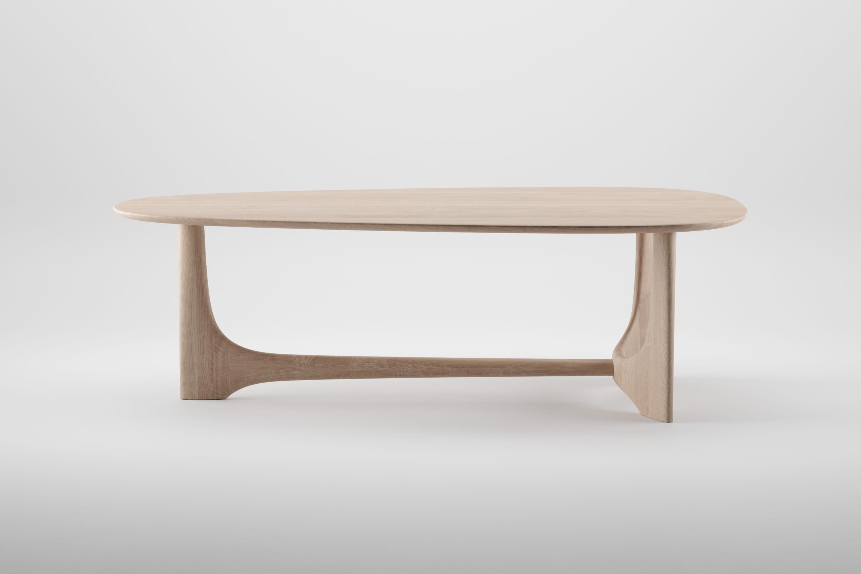 Kolekcija Oskar uključuje stolove i konzole izrađene od masivnog drveta, prepoznatljive po skulpturalnim nogama inspirisanim modernističkim stubovima iz Brazílie. Fluidni prijelazi između horizontalnih i vertikalnih elemenata stvaraju arhitektonsku siluetu koja je istovremeno dostojanstvena i suzdržana. Svaki komad izrađen je od pažljivo odabranog masivnog drveta, precizno obrađenog i dovršenog od strane vještih Artisanovih majstora. Dizajn uključuje knock-down konstrukciju za jednostavan transport, bez kompromisa po pitanju stabilnosti. Stolovi imaju ovalni gornji dio sa istaknutom pozicijom sjedenja s jedne strane, suptilno naglašavajući društvenu hijerarhiju na pozitivan i respektabilan način. Konzole proističu iz dizajna stolova, koristeći zid kao sekcijsku ravan koja otkriva i koristi H-oblikovani potporni element.
